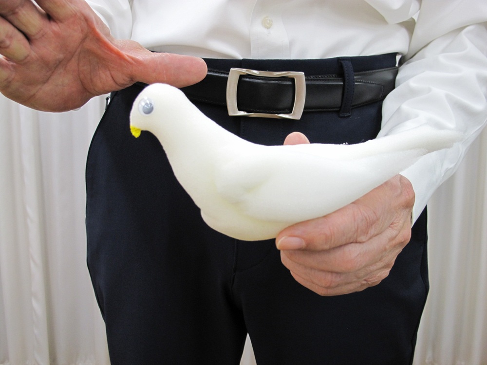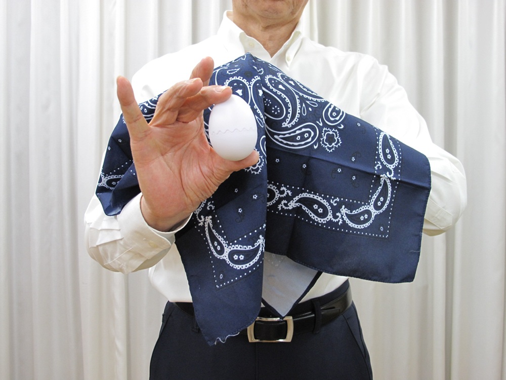 ハンカチからタマゴが出現~タマゴから鳩が出現! マジシャンは折り畳まれたハンカチをポケットから取り出し、広げて表と裏をあらためます。「ハンカチから鳩を出してみせましょう!」と言い、おまじないをかけると、鳩ではなく「タマゴ」が出現します。しかし、マジシャンは慌てることなく、タマゴを叩いて割ります。すると・・・!なんと、可愛い鳩が出てくるのです! 【セット内容】 ・ハンカチ ・タマゴ ・スポンジ鳩 ・解説DVD