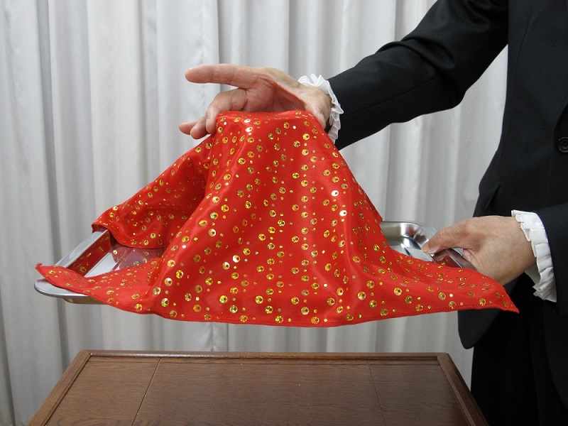 トレーが新しくなって再登場しました。 グラスにジュースを注ぎ、ハンカチを被せます。そしてグラスを持ち上げ空中に放ると、グラスは消えてしまいます。しかしトレーを見ると消えたはずのグラスが再び戻っています。でもジュースが消え、シルクに変化して現れているのです。 【セット内容】 ・トレー ・ミラーグラス ・スカーフ ・凝固剤 ・解説DVD